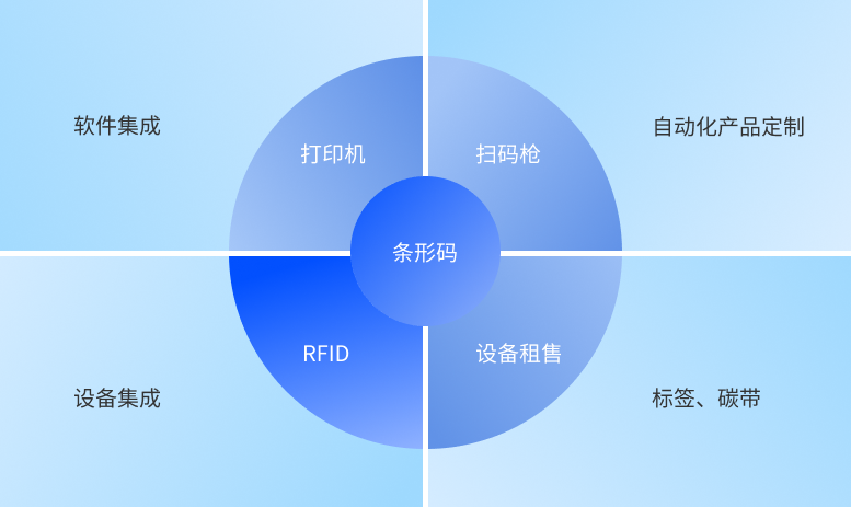 上海鋯瑞技術(shù)有限公司業(yè)務(wù)分為9大模塊,條形碼,RFID,打印機(jī),掃描槍,軟件集成,設(shè)備集成,自動化產(chǎn)品定制,標(biāo)簽碳帶和設(shè)備租售。 以條形碼和RFID為起點(diǎn),以打印機(jī),掃描槍和標(biāo)簽碳帶為基礎(chǔ),逐步技術(shù)延伸,層層遞進(jìn),實現(xiàn)識別軟件系統(tǒng)開發(fā),自動化檢驗設(shè)備集成,自動化產(chǎn)品定制等自主創(chuàng)作研發(fā)能力,滿足各類企業(yè)物聯(lián)網(wǎng)應(yīng)用需求。